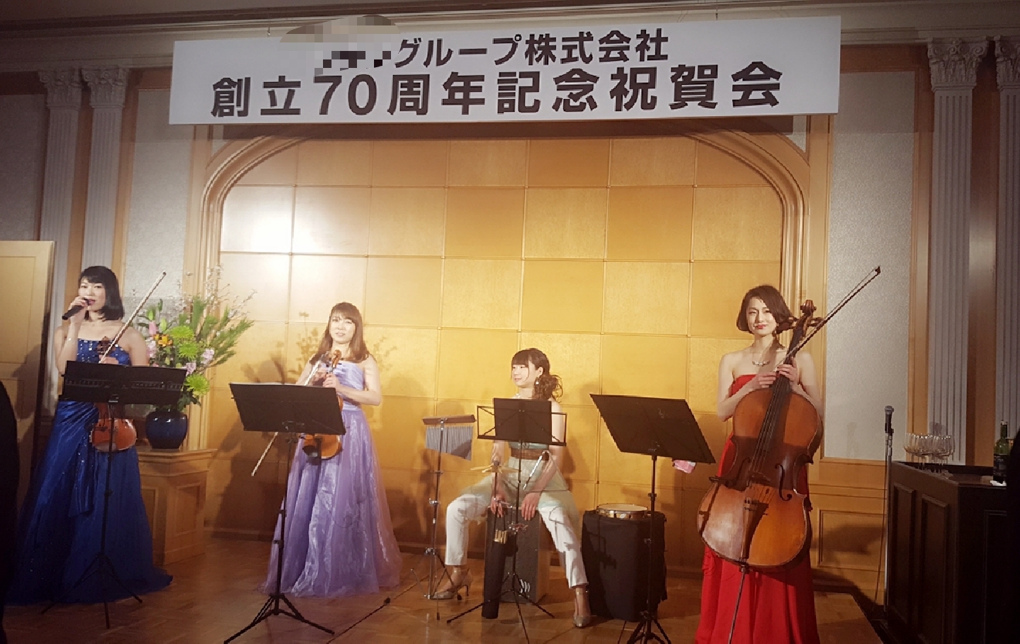 【 生演奏派遣事例】帝国ホテルタワー、一部上場祝賀会にヴァイオリスト4人が出張生演奏!