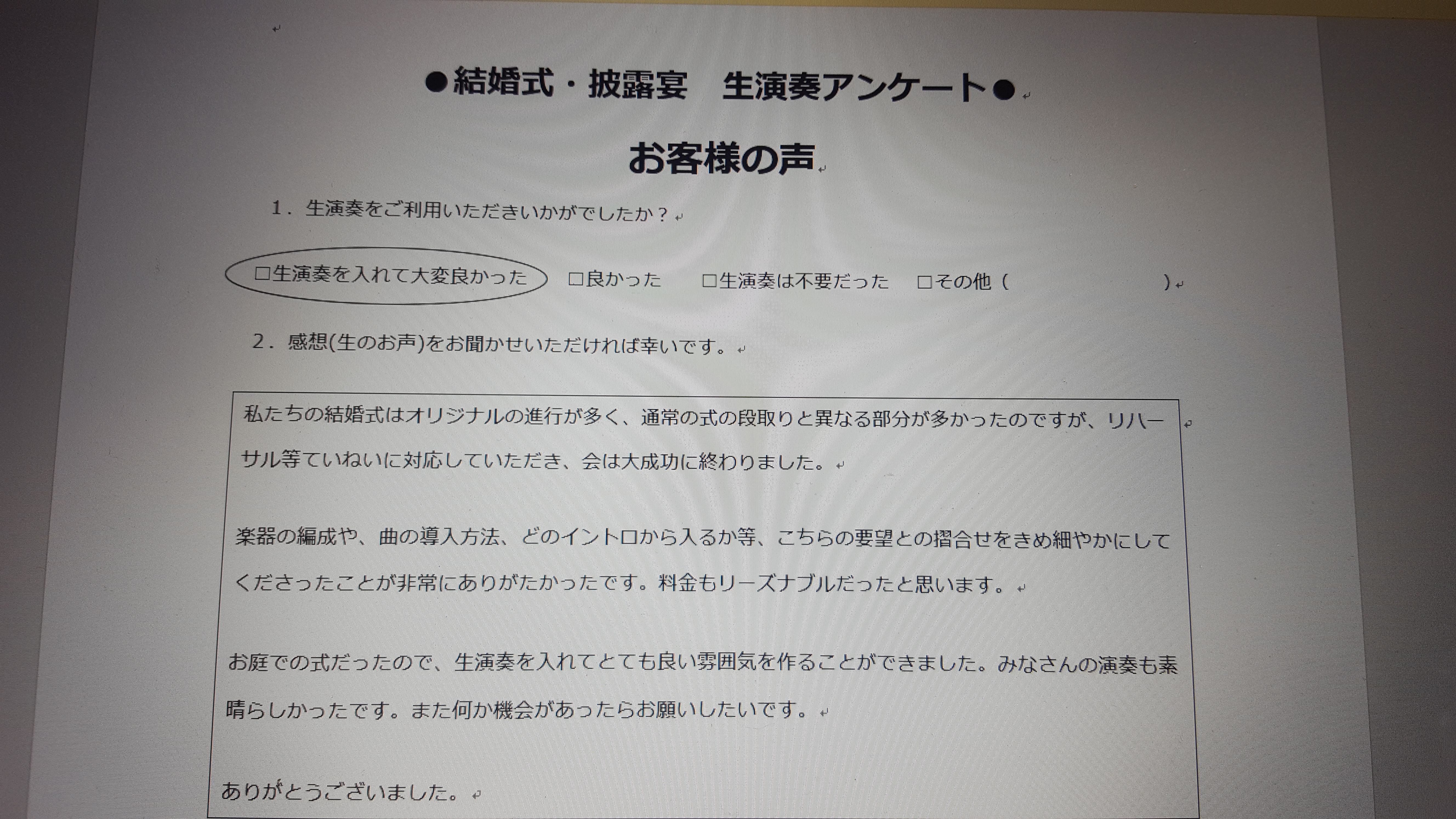 【生演奏依頼事例ソーシャルディスタンス】披露宴、結婚パーティー