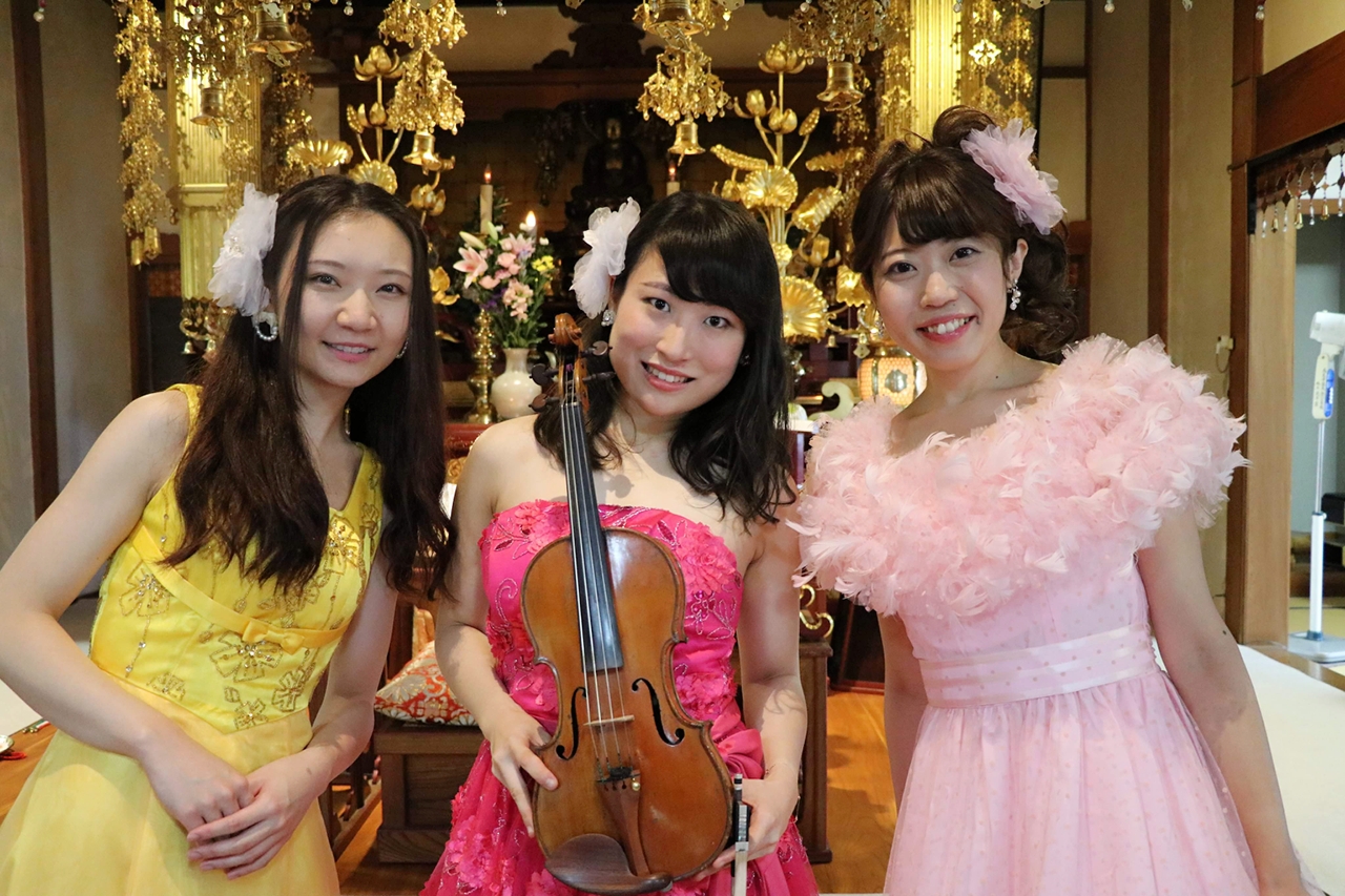 【 生演奏派遣事例】寺院本堂コンサート≪美女たちの音楽会≫ソプラノ、ピアノ、ヴァイオリンで癒しの空間を演出